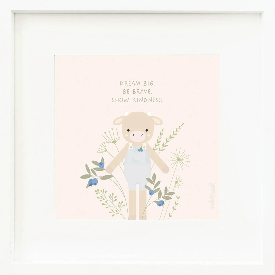 This is Asher the cow’s favorite quote. The warm neutrals and soft blues of this print are so soothing for little ones, and beautiful in the nursery. What a wonderful way to remind your little one to be the best they can be, every day!