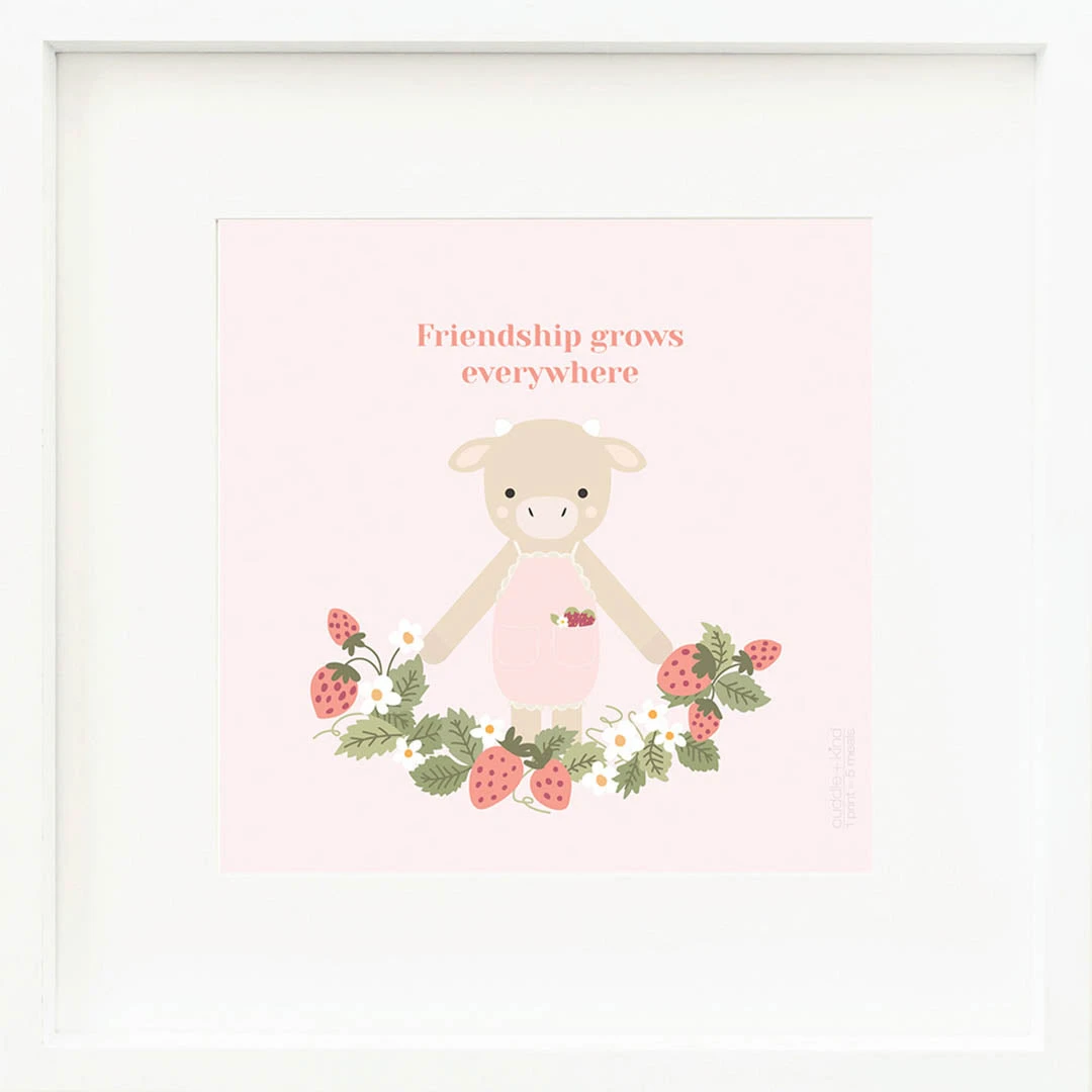 This is Ava the cow’s favorite quote. With the sweetest little blossoms and strawberries on a soft blush background, this adorable print is such a fun pop of pink for your little one’s room.