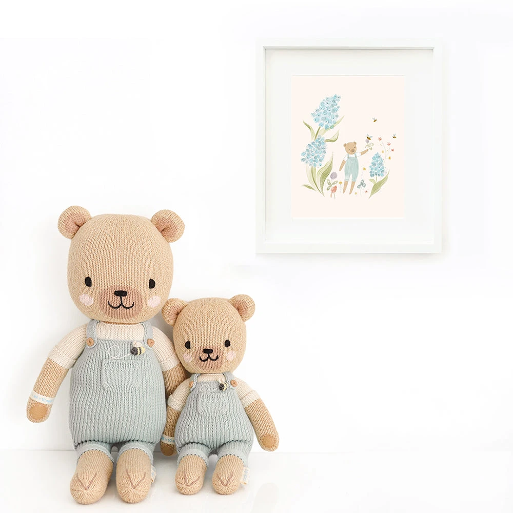 This stunning print features a breathtakingly hand painted watercolor rendition of Charlie and his tiny bumblebee friends among the bluebells. A beautiful addition to any stylish nursery!
