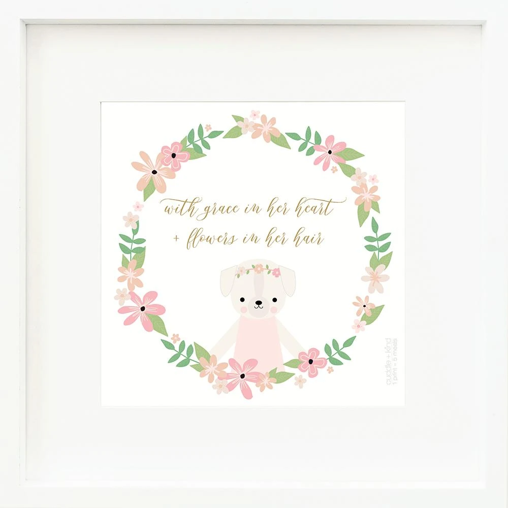 This is Charlotte the dog’s favorite quote. We can’t stop swooning over the floral garland and love how it picks up Charlotte’s headband. This beautiful print is so fresh – the perfect accent for your little one’s room.