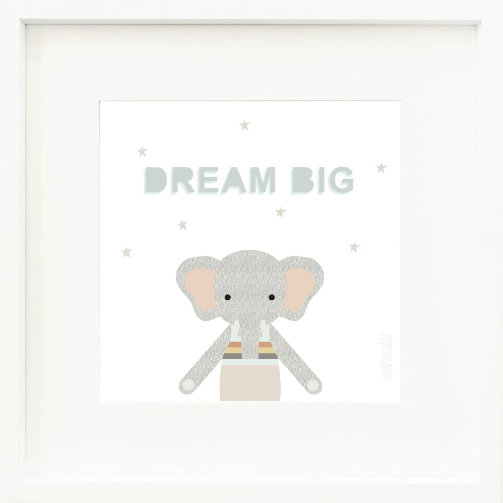 This is Evan the elephant’s favorite quote. A stylish boy’s room isn’t complete without a beautiful, inspirational print like this. We love the simplicity of the design, the on-trend type and the whimsical stars. Adorable!