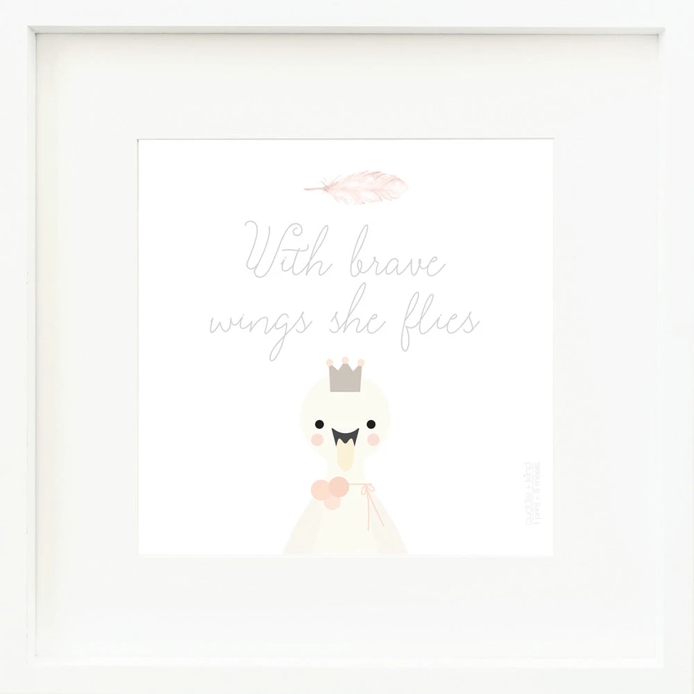 This is Harlow the swan’s favorite quote. We love how elegant this design is in its simplicity and adore the soft warmth of the color palette. Who says bravery can’t be ultra-feminine? We think it would look gorgeous in a modern little’s room or nursery and hope it inspires your courageous girl.