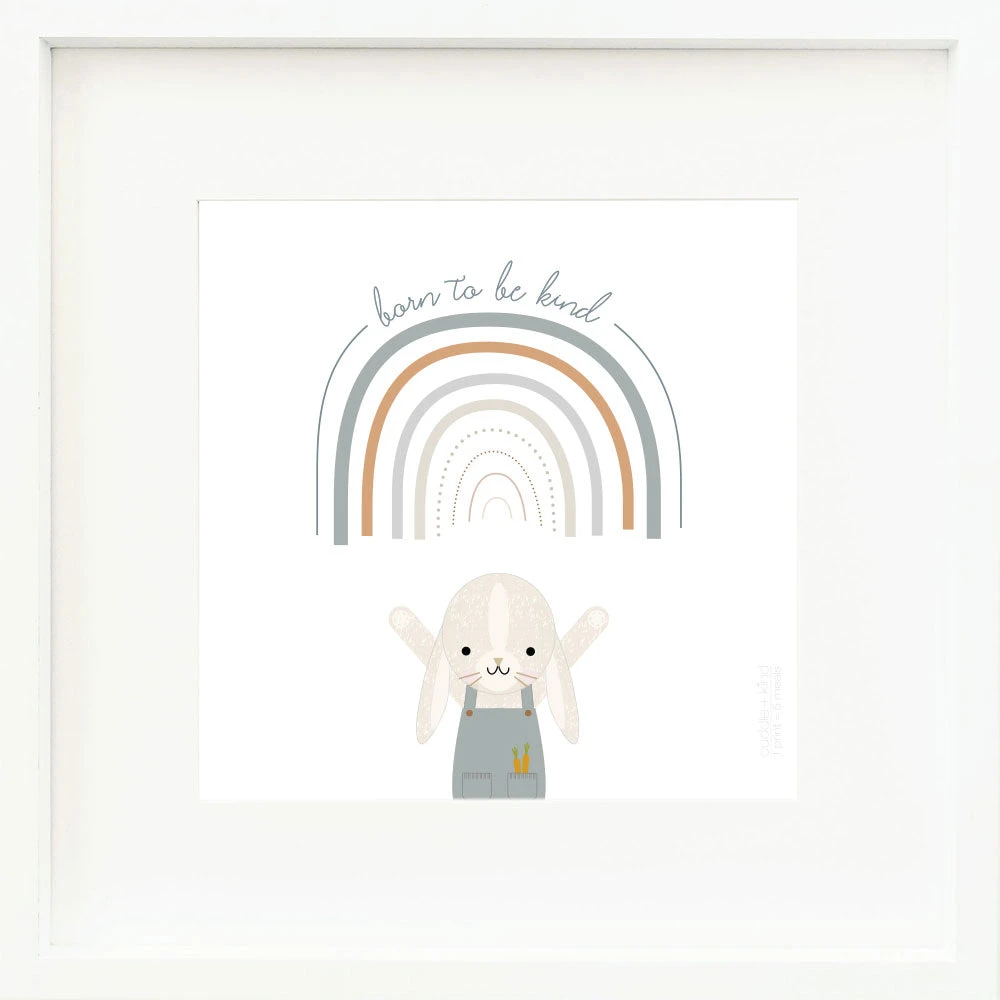 This is Henry the bunny’s favorite quote. We can’t help but smile whenever we see this adorable print! We love the unique graphic rainbow in the perfect washed neutral colors and adore the warm twist of Henry’s quote. We hope it inspires your kind little gentleman as much as it does us.