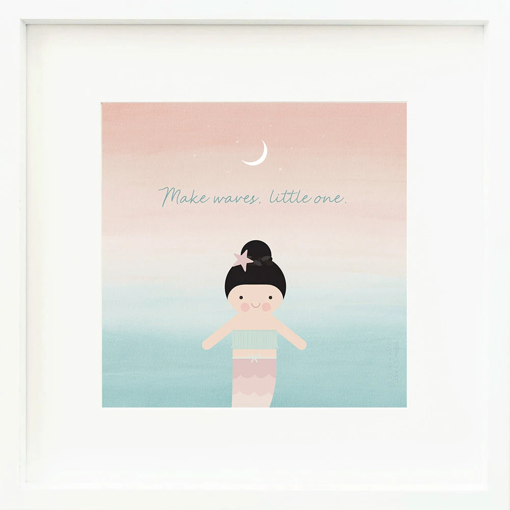 This is Luna the mermaid’s favorite quote. We’re gushing over the calming ombre of this meditative print, and think its pastel tones would add the dreamiest touch of whimsy to a stylish little one’s room. We hope that Luna’s quote inspires your little one to embrace their inner confidence.Â