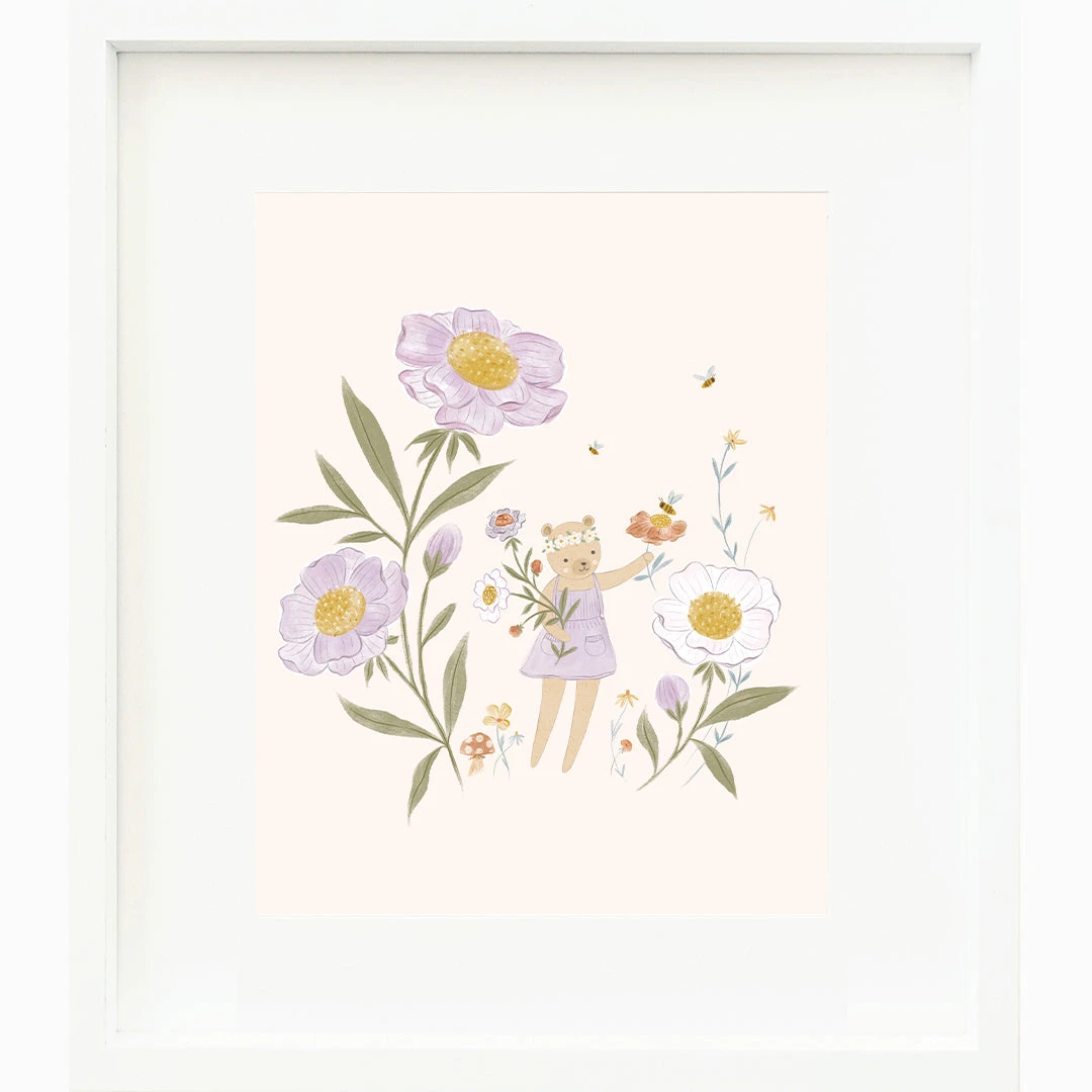 This stunning print features a breathtakingly hand painted watercolor rendition of Olivia wandering through the wildflowers, picking fresh blooms for her next flower crown. A beautiful addition to any stylish nursery!